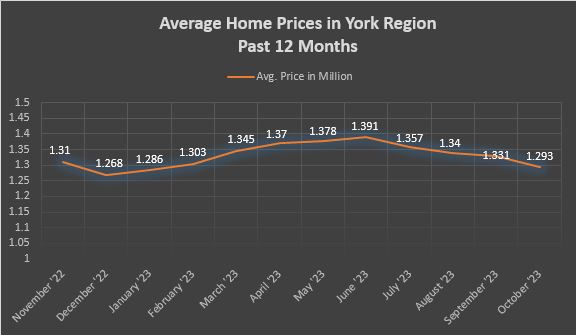 York Region prices ($1,293,179) are up 2.75% compared to last year but dropped 2.8% from September to October.